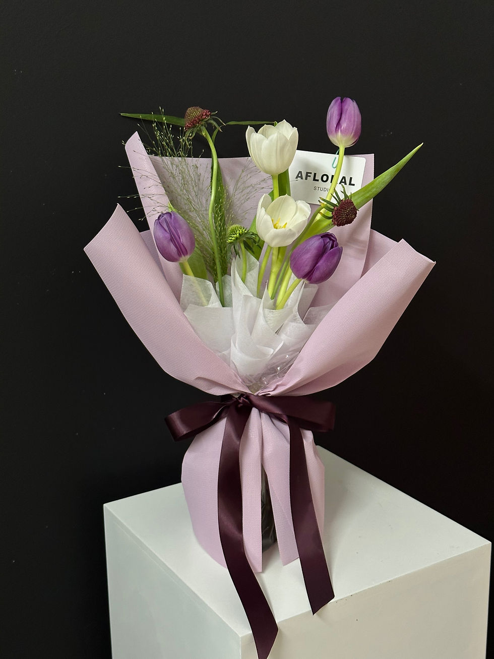 Bó hoa mix tone tím Tulip mix hoa hồng nhập khẩu